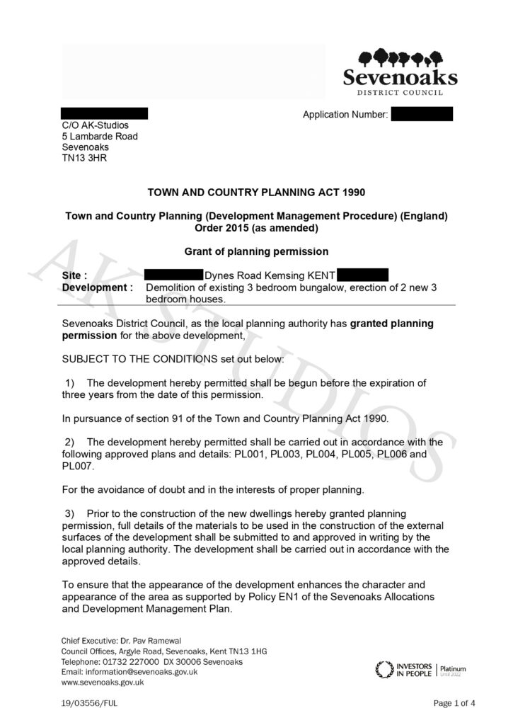 Sevenoaks Dynes Road Demolition of existing 3 bedroom bungalow, erection of 2 new 3 bedroom houses …
